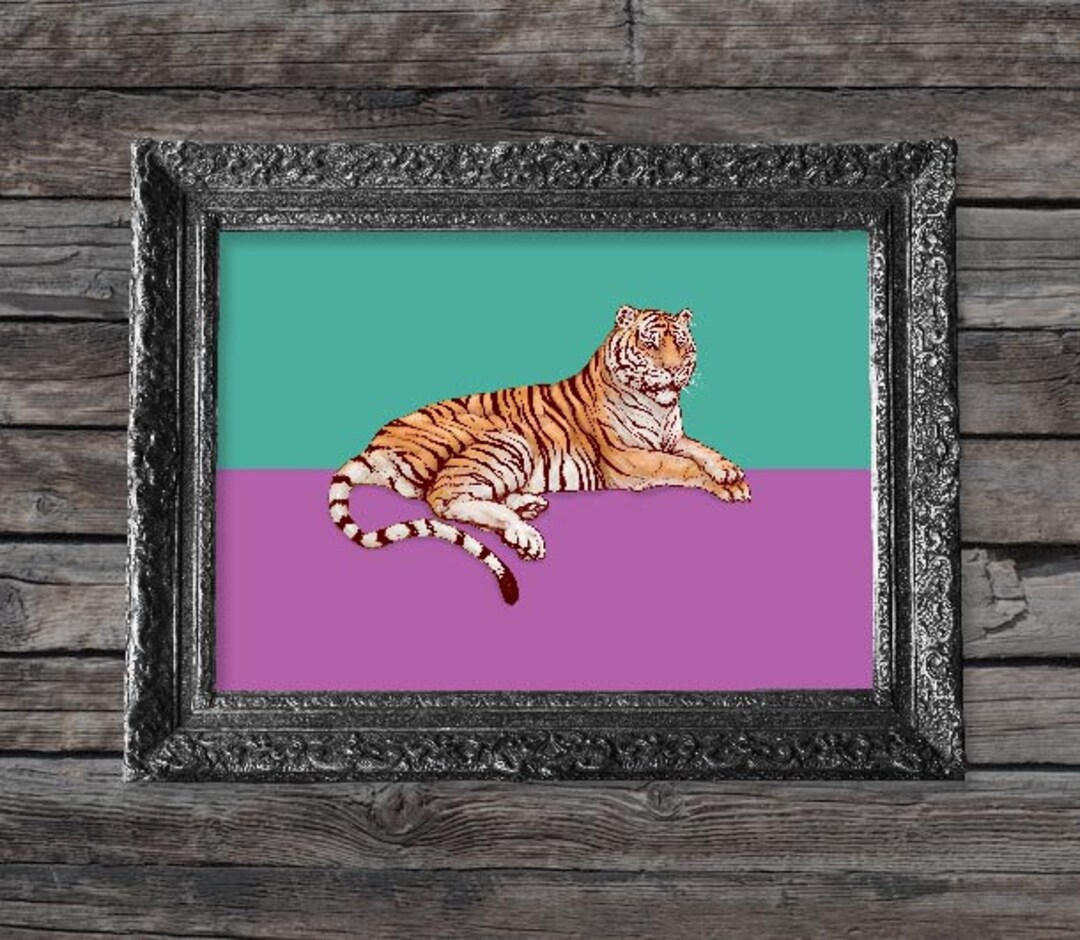 Tiger Retro Print Pink Green Bright Bold Two Tone 70s Etsy